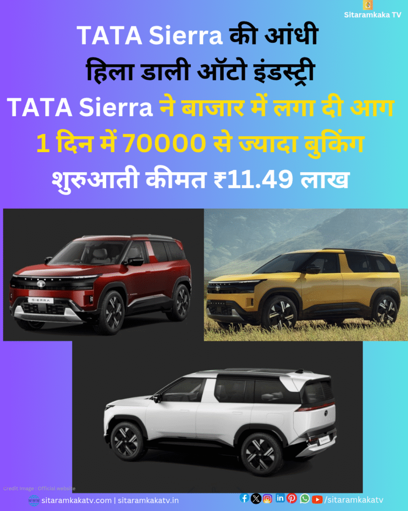 TATA Sierra की आंधी हिला डाली ऑटो इंडस्ट्री 1 दिन में 70000 से ज्यादा बुकिंग